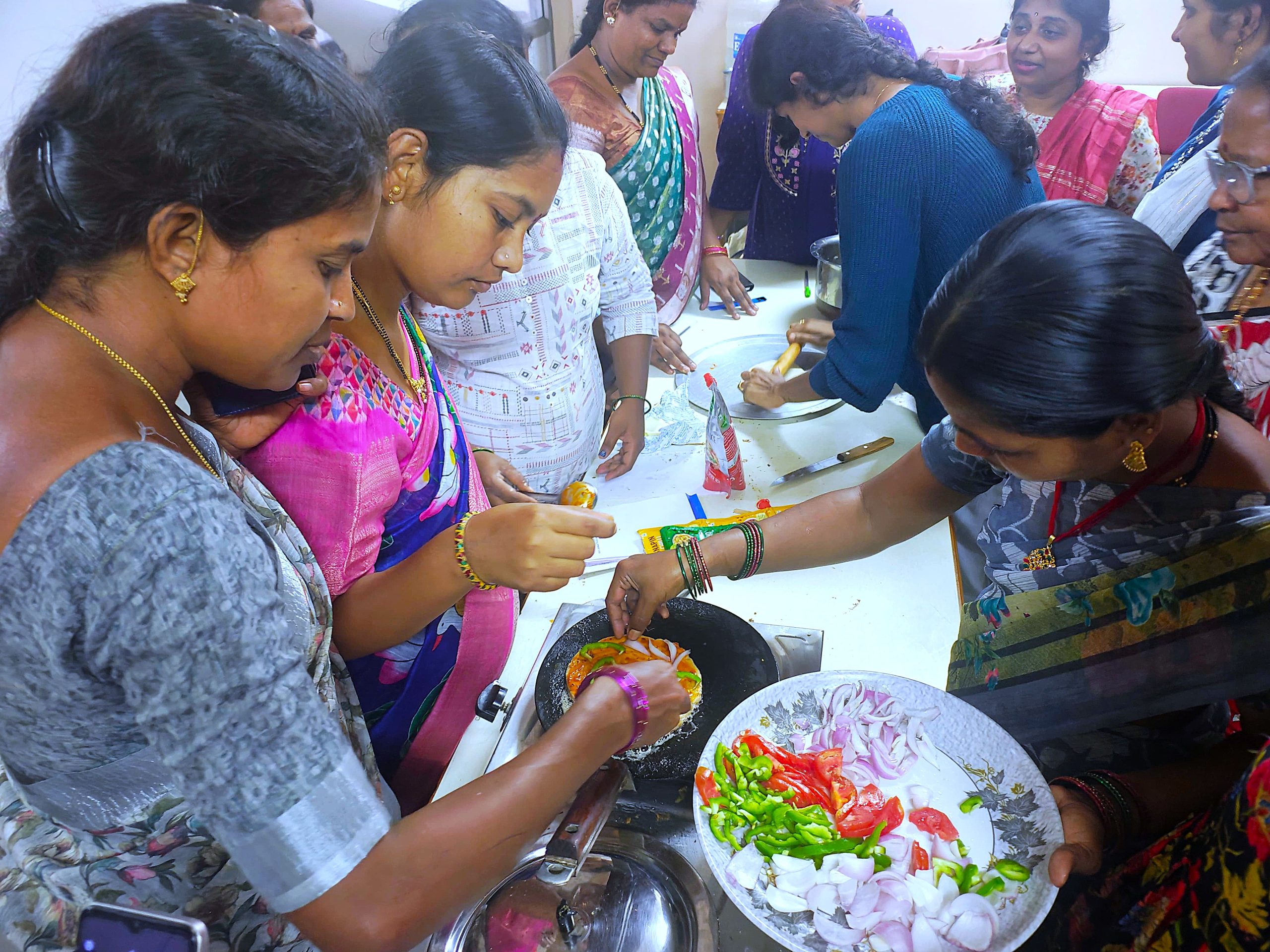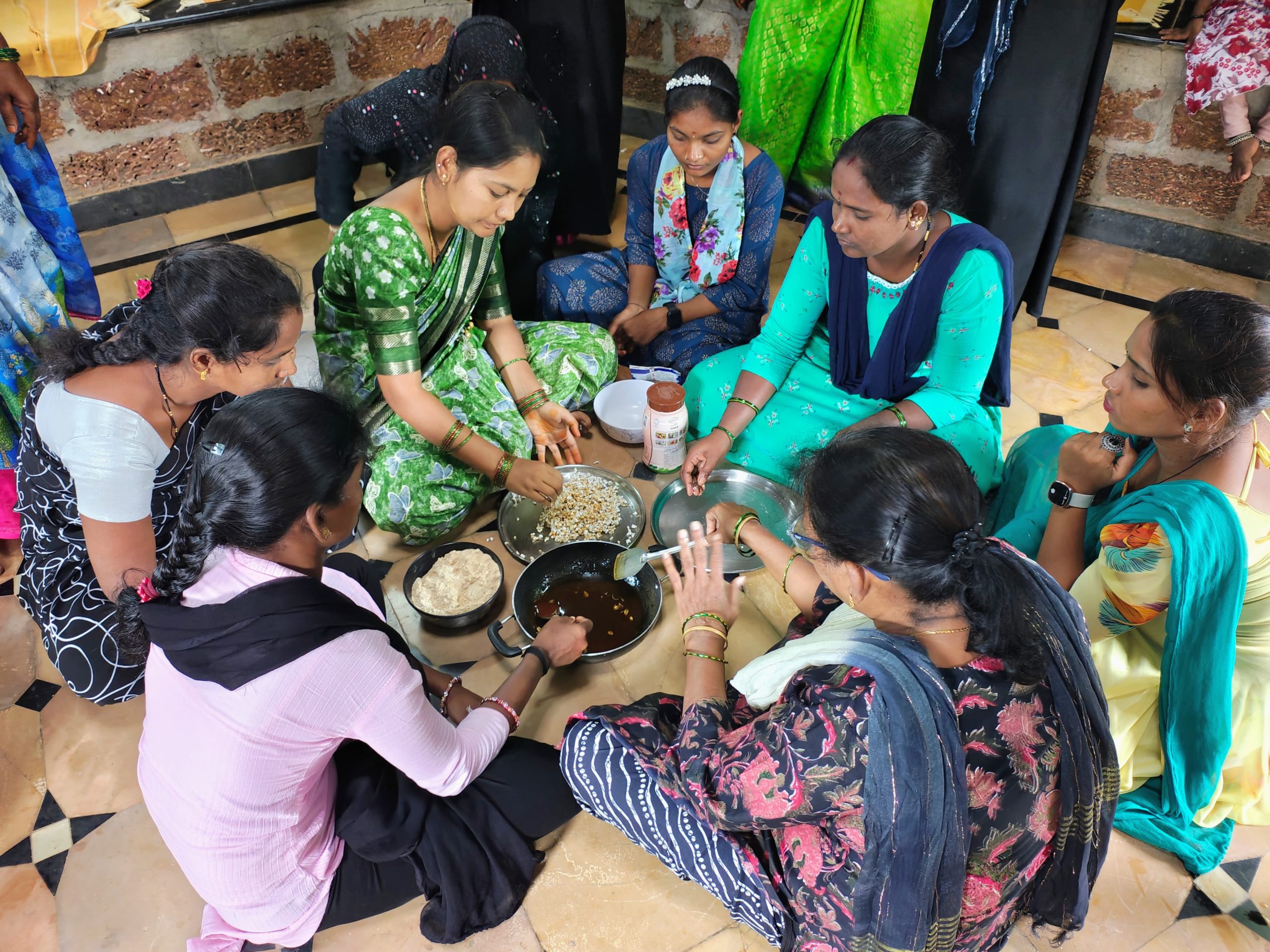Through culinary trainings, the Vanithas shared and exchanged with other community women the traditional forgotten recipes of millets and other locally grown foods. They also demonstrated innovative ways of cooking these foods so that young children find them delicious, encouraging mothers to prepare nutrient-dense snacks at home so that the children shift away from ultra-processed food packets. The ‘One Millet Meal a Day’ motto promoted during workshops and food festivals conducted by the Vanithas have become increasingly popular in their communities.
